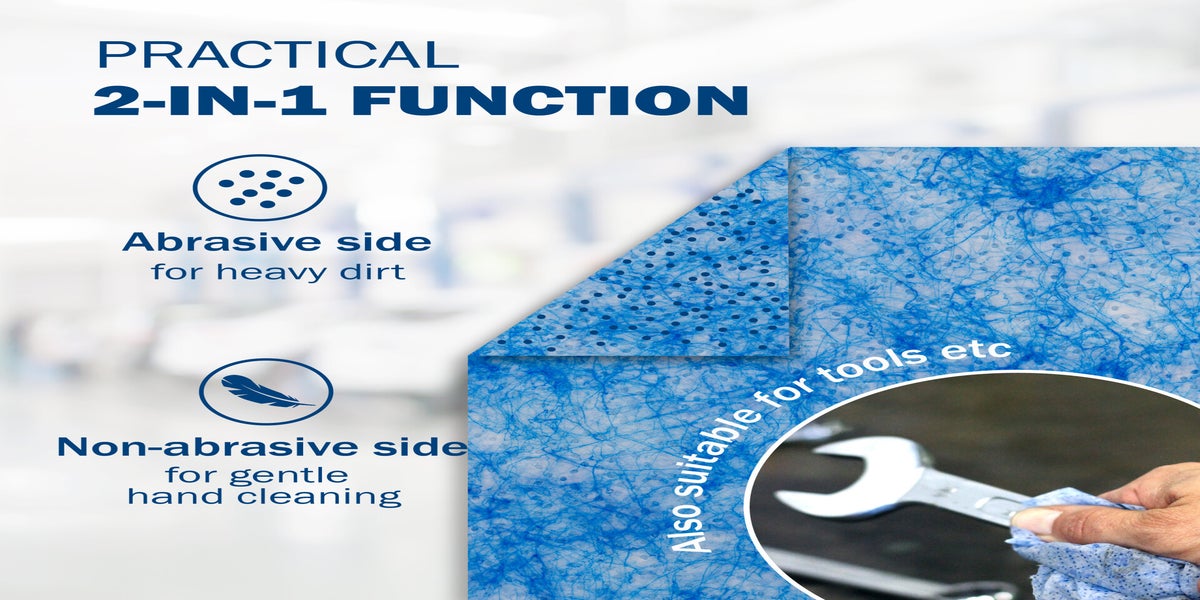 De schurende zijde is ideaal voor het verwijderen van smeermiddelen of soortgelijke zware afzettingen van oppervlakken zonder ze te krassen. Dit maakt de SCRUBS® tot een reinigingsdoek die kan worden gebruikt om oppervlakken snel schoon te maken na onderhouds- of assemblagewerkzaamheden of om gereedschap dat vervuild is met smeermiddelen schoon te maken voor het volgende gebruik. De andere kant van de doek kan worden gebruikt voor een zachte handreiniging dankzij het zachte oppervlak.